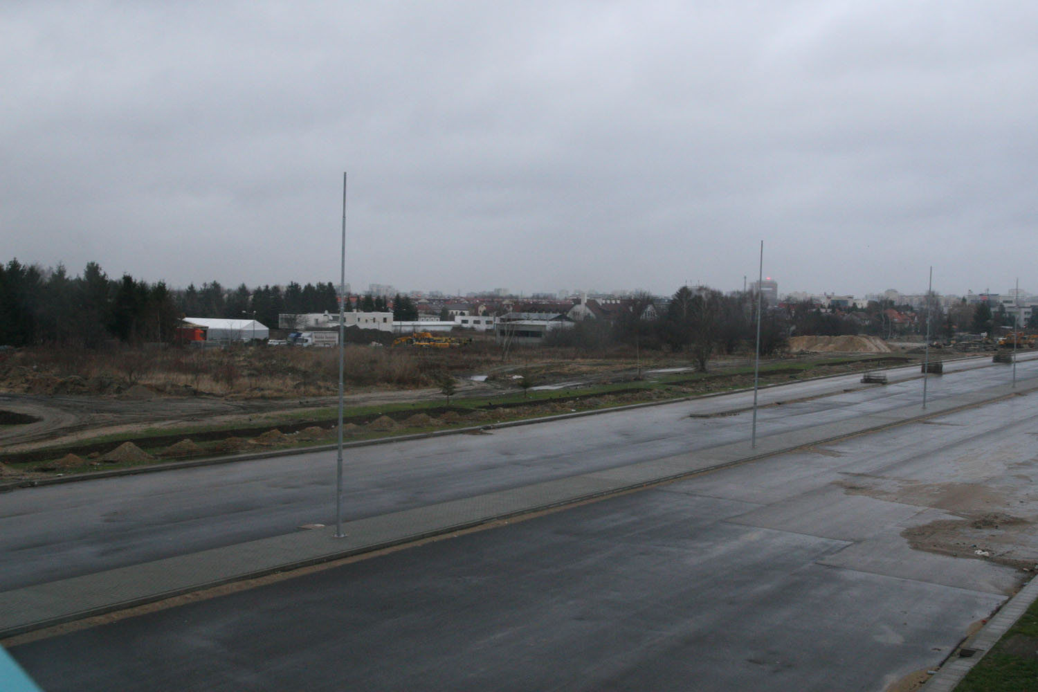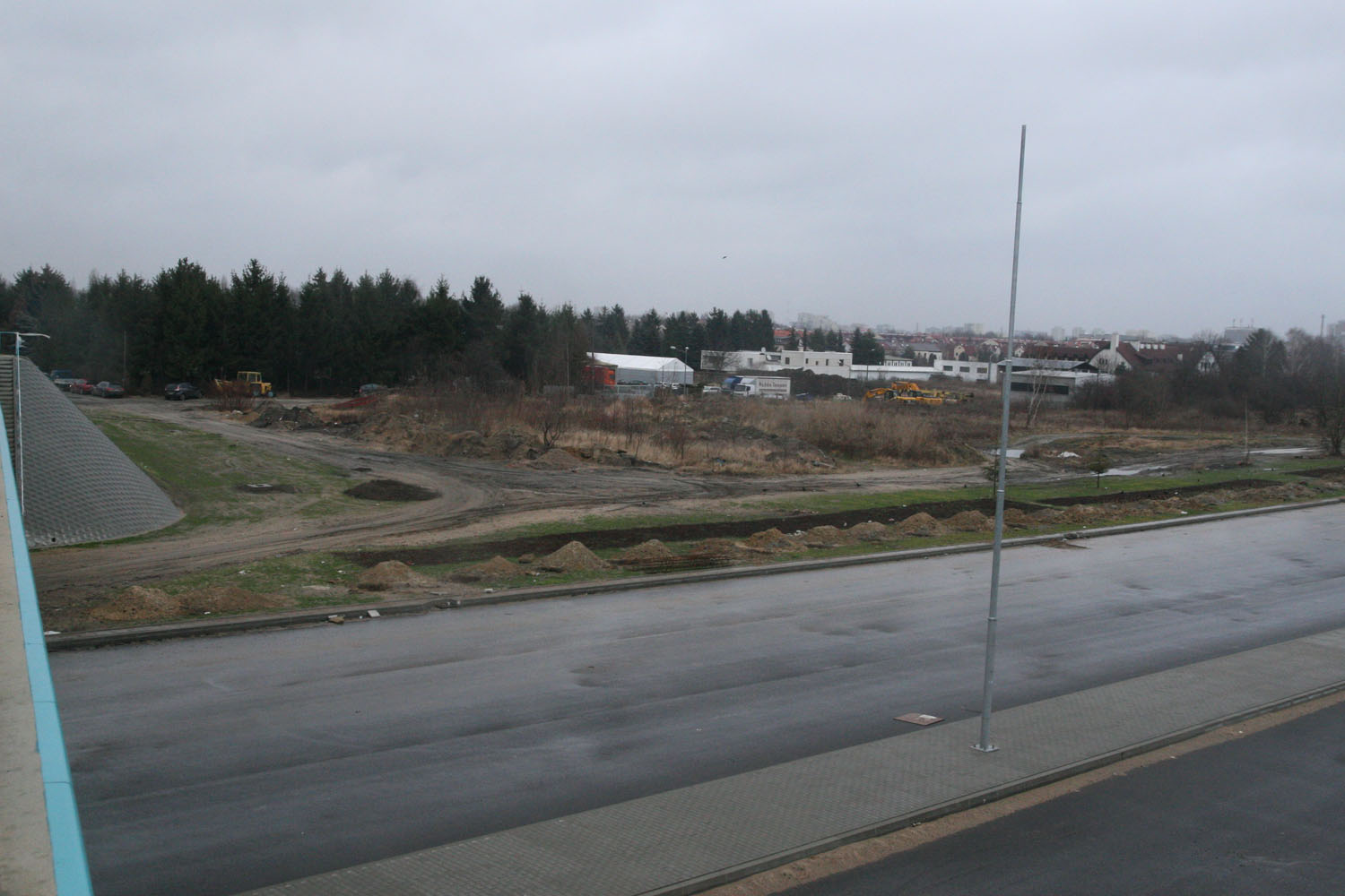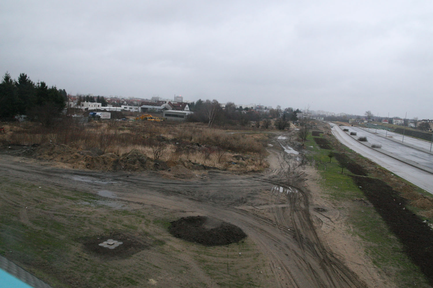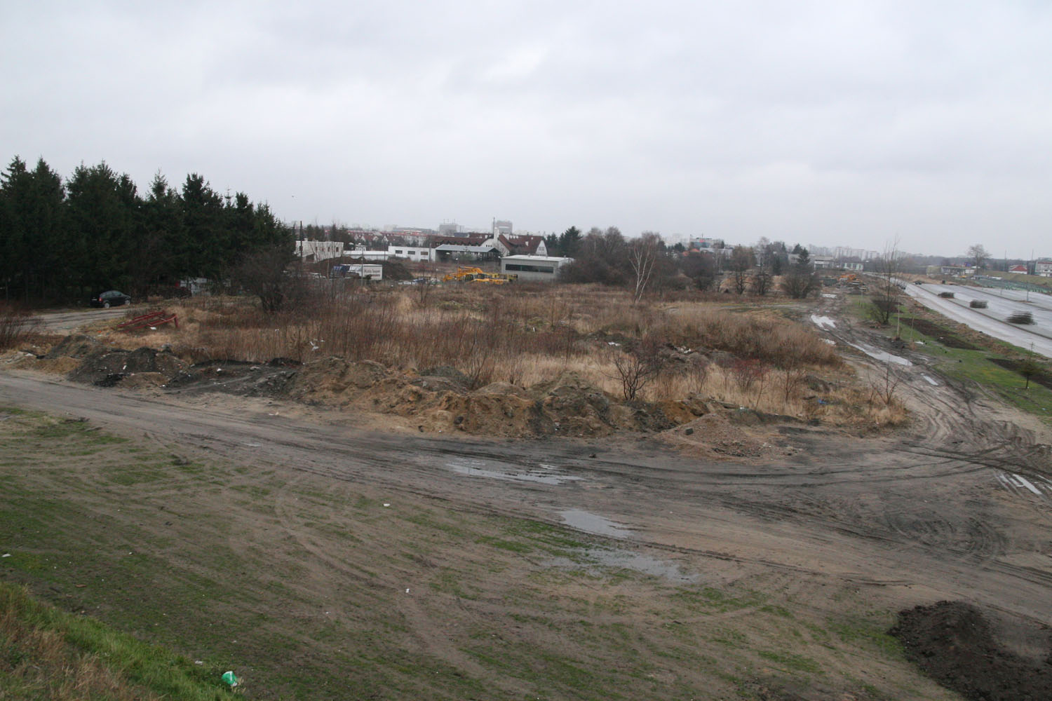 Widok na działki 27/1, 25/1 i 197 z wiaduktu WD-28 nad obwodnicą S-2
